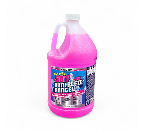 Star Brite ® -50 Degree Fahrenheit (-46 Degree Celsius) Non-Toxic RV Antifreeze provides excellent cold weather protection for drinking water systems. The 3X-dyed bright pink color provides excellent blow-through visibility. Formulated with virgin, non-toxic USP-grade ingredients. It contains no alcohols. This product is ready-to-use; do not dilute it.