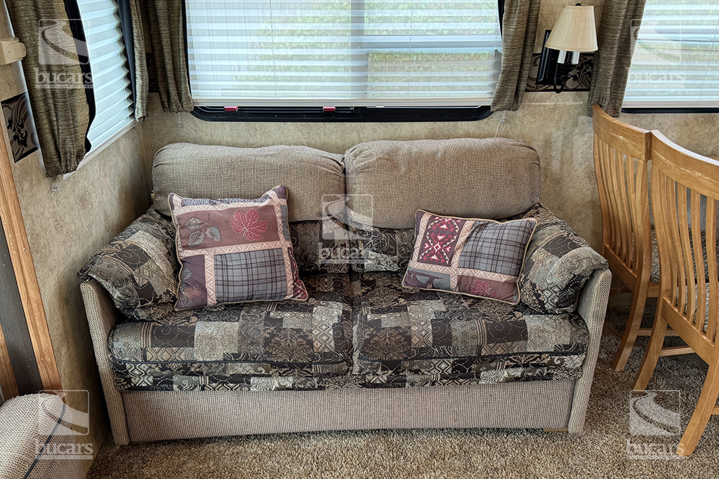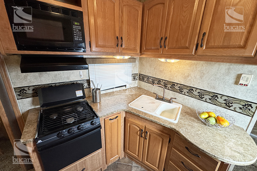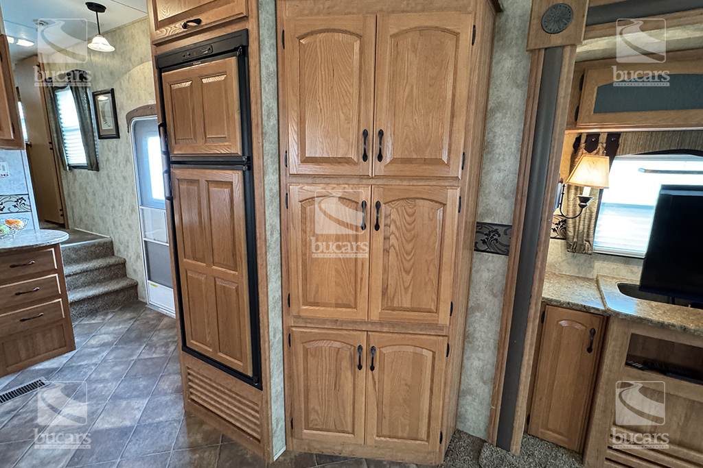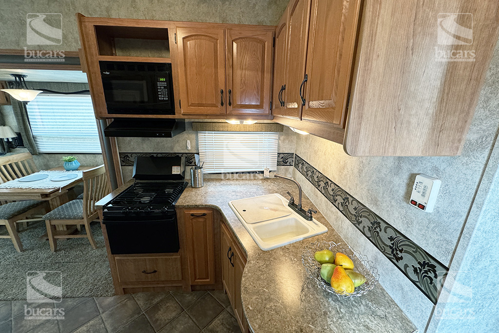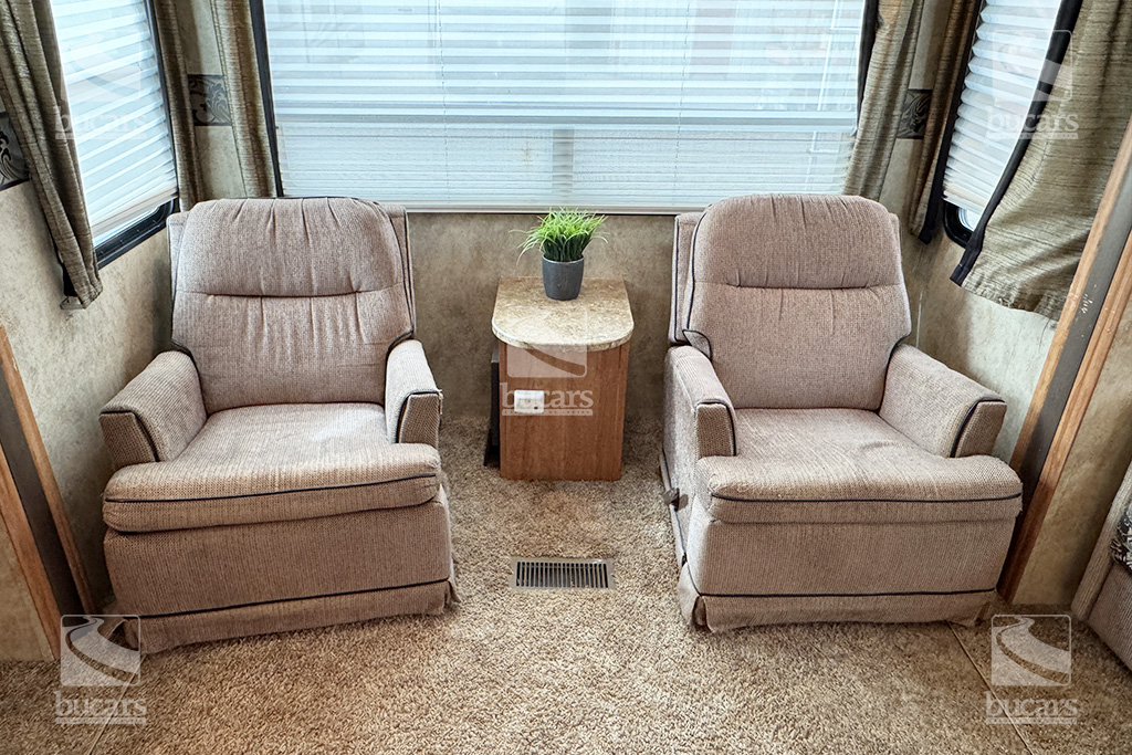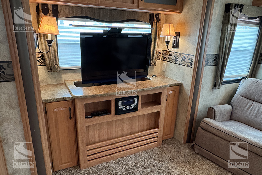This 2011 Keystone Copper Canyon 314FWRL is a well-appointed fifth wheel measures in at 36 feet long and has 3 slideouts. This RV has been well-maintained and has plenty of premium features to make your camping trips comfortable. The corner kitchen is conveniently located inside the entrance and features a three-burner cooktop, microwave, double bowl sink, gas/electric refrigerator, ceiling fan, and plenty of storage. The freestanding dinette offers maximum flexibility for seating. And you will love relaxing in the rear living room that has a pull-out sleeper sofa across from the entertainment centre with stereo and hidden TV on lift. The dual recliners in the rear are below the large picture window with plenty of natural light. The bedroom has an upgraded queen mattress, dresser, and wardrobe with mirrored doors. You will be amazed by all of the storage inside and out of this spacious RV. For additional information on this Keystone Copper Canyon, please call or text our main line at 403-207-1666, or come down and see this used fifth wheel for yourself at our Balzac lot just north of Calgary. For after-hour inquiries, please text us at 403-207-1666.