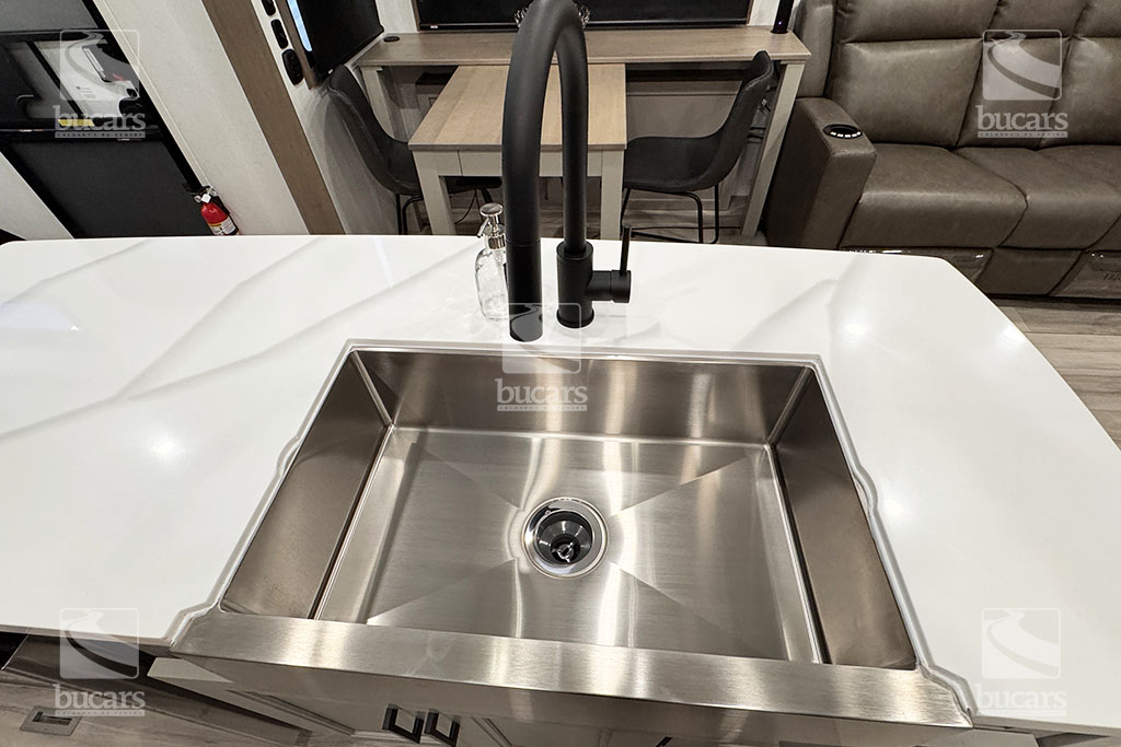 - Solid Surface Countertops w/Deep Undermount Farmhouse Stainless Steel Kitchen Sink w/Sink Cover