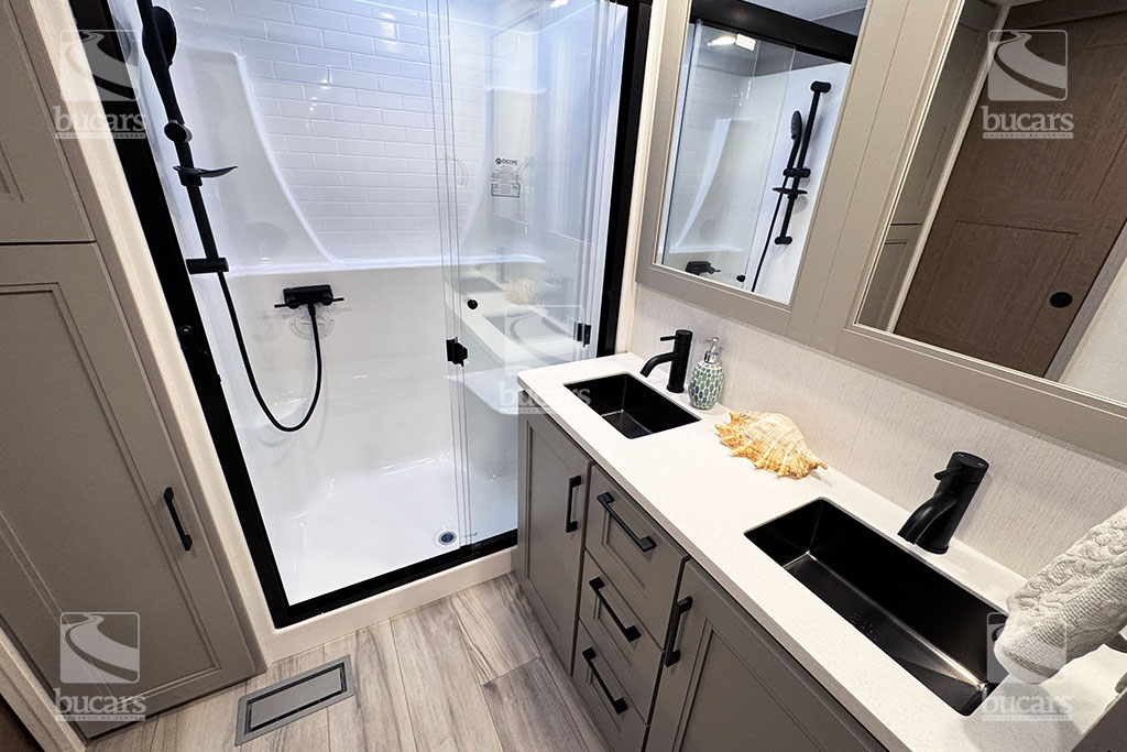 - Deluxe Heated Water Convenience Center (includes black tank flush, power fresh tank water fill, winterizing system, outside shower & dry camping water siphon system)