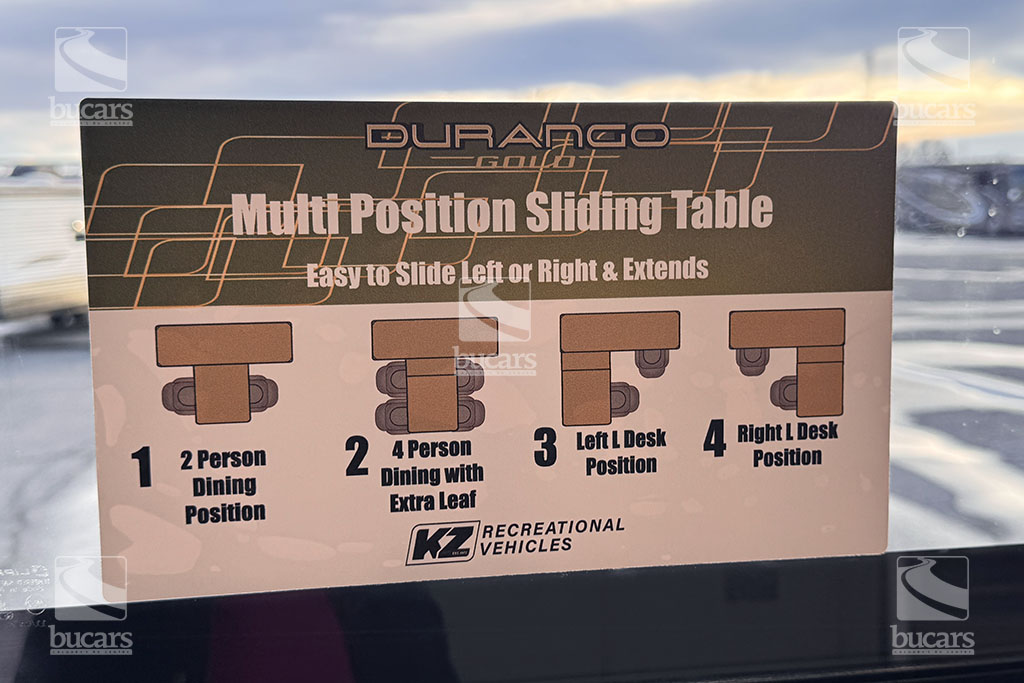 For additional information on this luxurious K-Z Durango Gold please call or text our main line at 403-207-1666, or come down and see this brand new fifth wheel in full paint for yourself at our Balzac lot just north of Calgary. For after-hour inquiries, please text us at 403-207-1666.