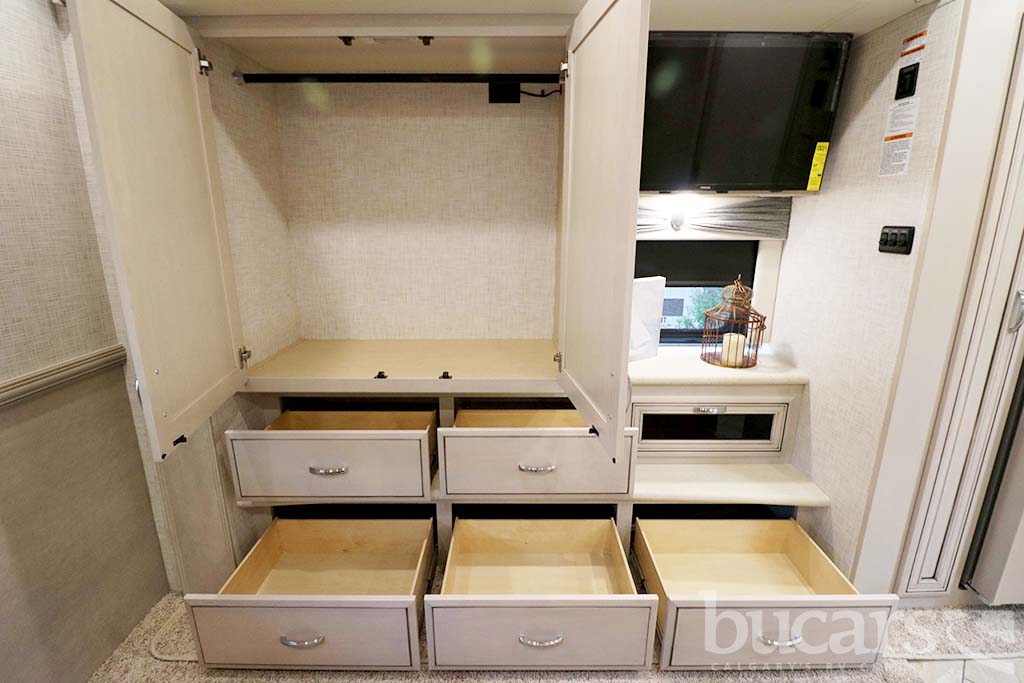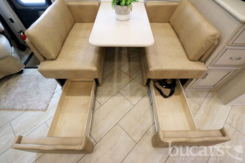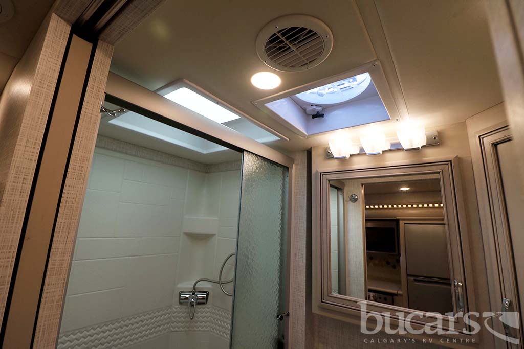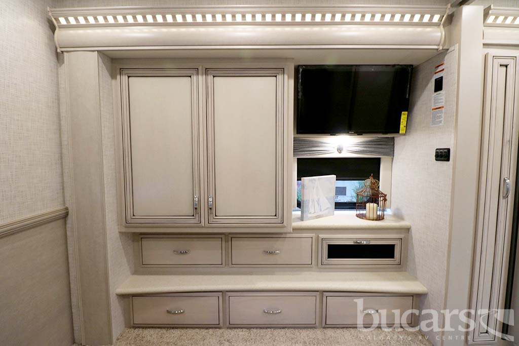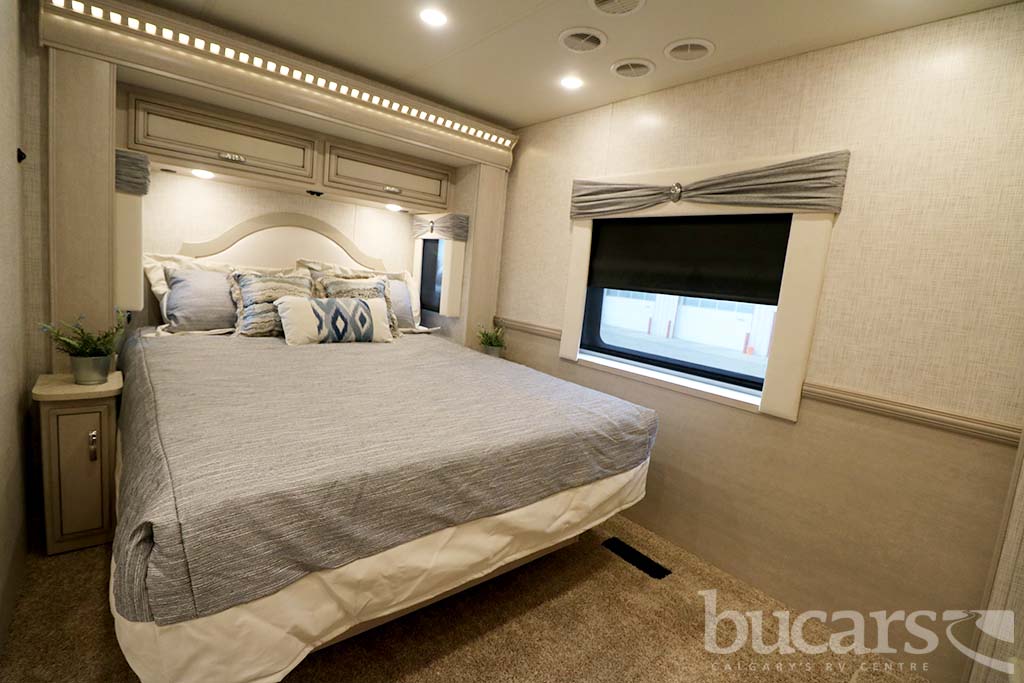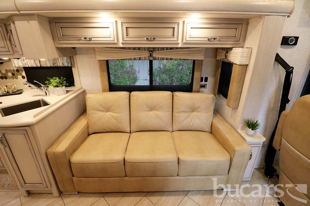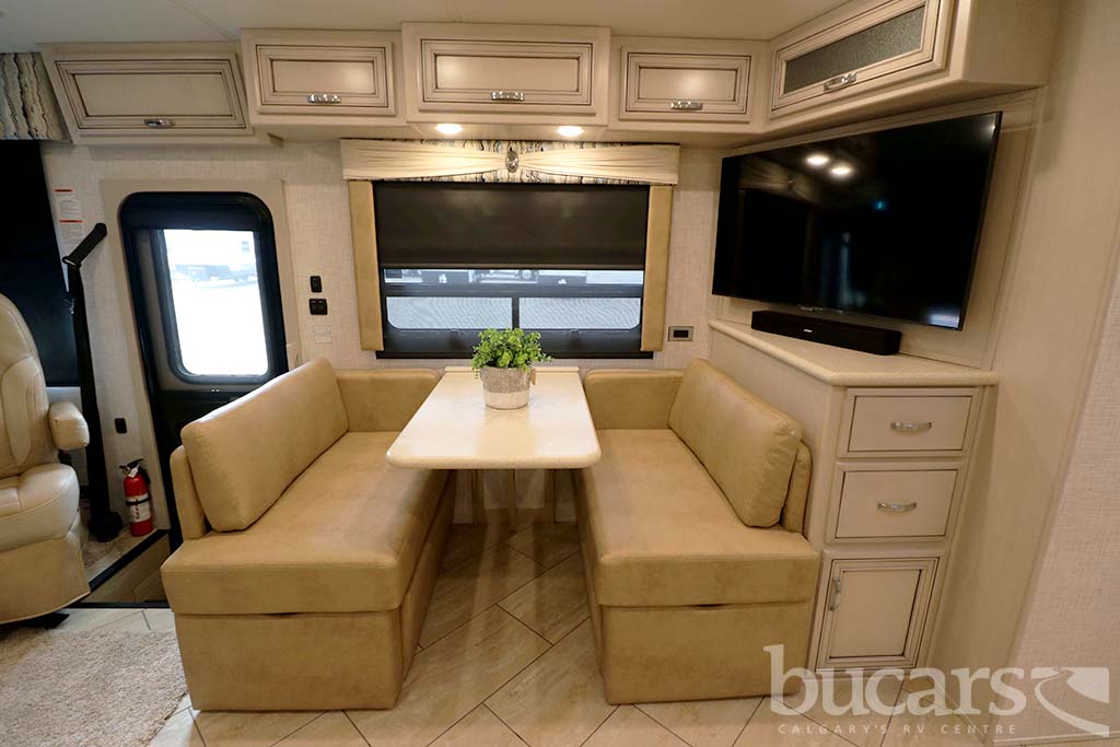 The 2021 Newmar Bay Star Sport 3014 Class A motorcoach features a Ford F-Series Chassis with a 7.8-liter V8 engine supplying 350 hp, campsite view booth dinette with entertainment center and under bench storage, Ultralux leather sofa and front seats with folding cockpit table, auxiliary heater in bedroom, queen sized walk around bed in slide with rear window and full wall wardrobe/entertainment center, skylight and fan in the bathroom, raised residential size refrigerator, 3 burner cooktop, convection microwave, solid surface countertops, rear ladder, solar prep, 13.5 Penguin Heat Pump A/C’s and 5.5 Onan Generator. For additional information on the 2021 Newmar Class A motorcoach please contact us at 1-800-267-8348, or come down and see this Bay Star Sport 3014 for yourself at our Balzac lot just north of Calgary. For all after hour sales inquiries call or text 403-710-8314, email sales247@bucarsrv.com or during business hours call or text 403-207-1666.