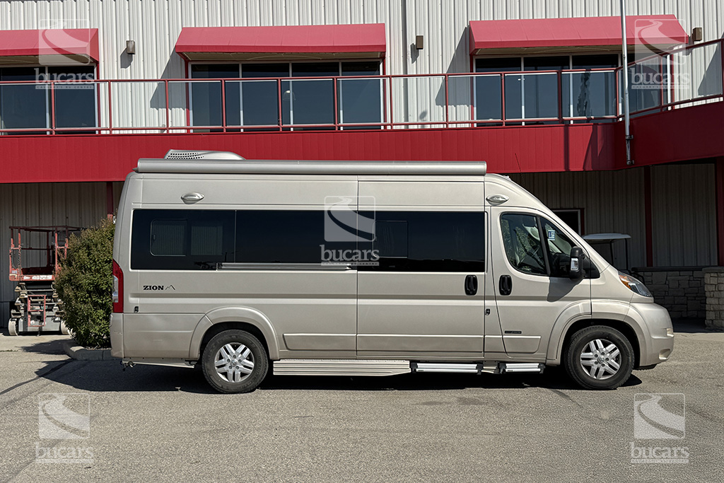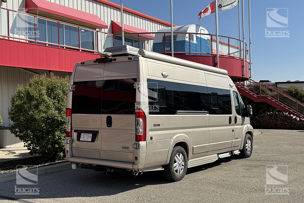 This 2018 Roadtrek Zion is a perfect couple’s roadtripping camper van! This Class B motorhome in metallic tan paint is built on a Ram Promaster chassis and has everything you need for life on the road, including solar panels to keep your battery topped up. The screen package lets you enjoy the outdoors without the annoyance of bugs. When it’s time for bed, the power bench seat folds down effortlessly to set up the rear sleeping area. The well-equipped kitchen features a two-burner cooktop, sink, microwave, and refrigerator. The three-piece wet bath with French doors is a convenient touch for living the van life. For more information on this used Roadtrek Zion, please call us at 1-800-267-8348 or come down and see this couple’s camper van on our Balzac lot just north of Calgary. For all after hour sales inquiries call or text 403-710-8314, email sales247@bucarsrv.com or during business hours call or text 403-207-1666.