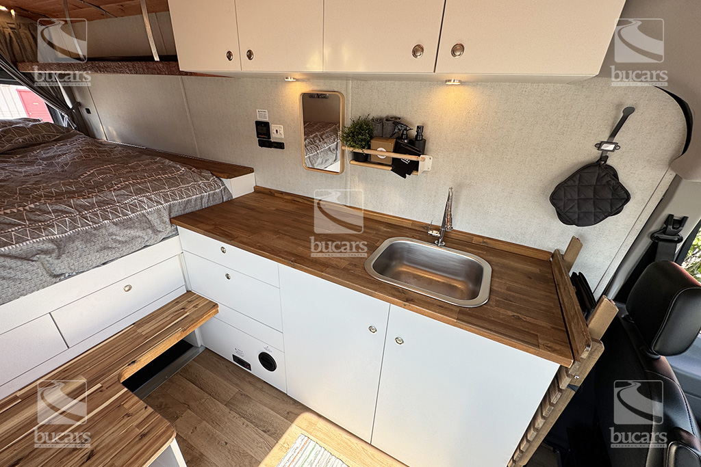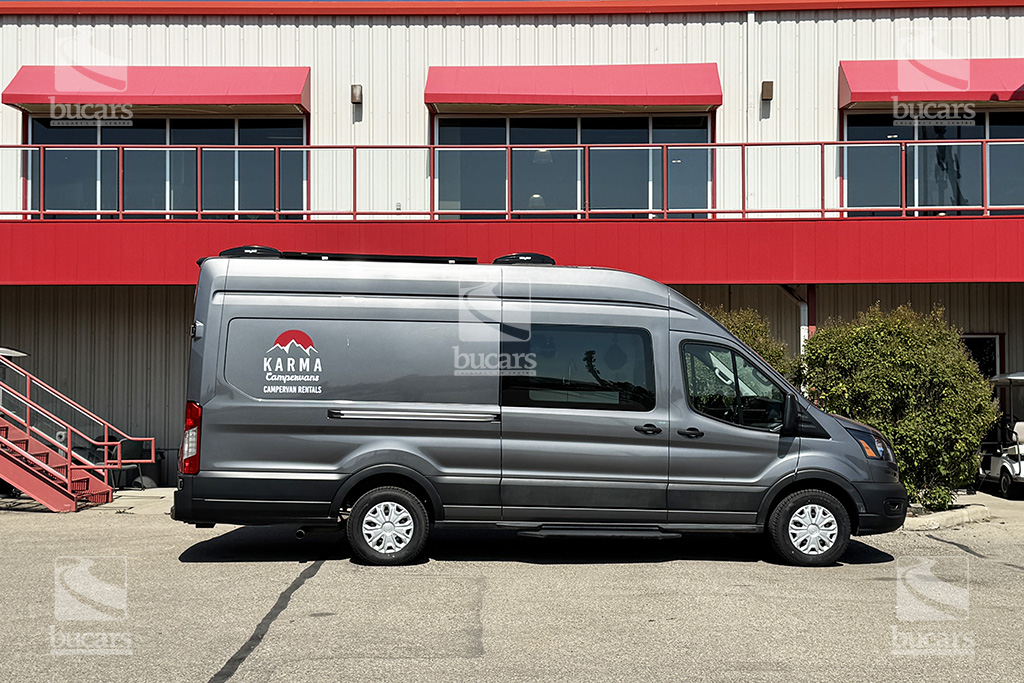 Live the #vanlife you’ve always dreamed about with this expertly crafted campervan conversion. Fully insulated and 4-season ready Ford Transit campervan has low km’s and ready for all your future adventures. Inside, you’ll find a beautiful interior with white cabinetry, wood panelled ceilings, wood floor tiles, and rustic accents like the live-edge shelf and simple to use water system. Keep warm with the B4 Airtronic Eberspacher gas heater and cruise the open highways with the popular Ford Ecoboost 3.5L turbo engine. The 250 watt solar kit and chassis charge line, plus 50-amp battery charger ensures you have available power at all times. This van was part of the Karma Campervans rental fleet and decals will be removed prior to delivery. For more information on this custom Ford Transit camper conversion van Zion, please call us at 1-800-267-8348 or come down and see this former Karma camper van on our Balzac lot just north of Calgary. For all after hour sales inquiries call or text 403-710-8314, email sales247@bucarsrv.com or during business hours call or text 403-207-1666.