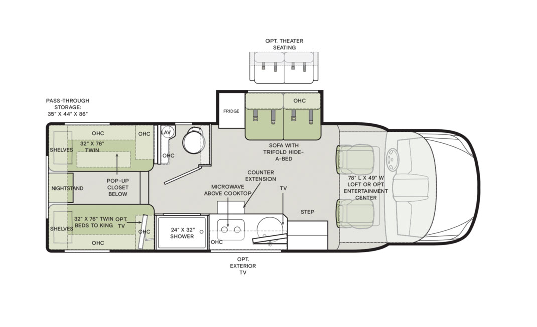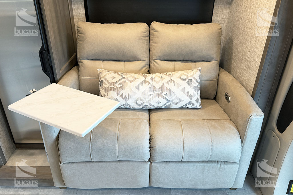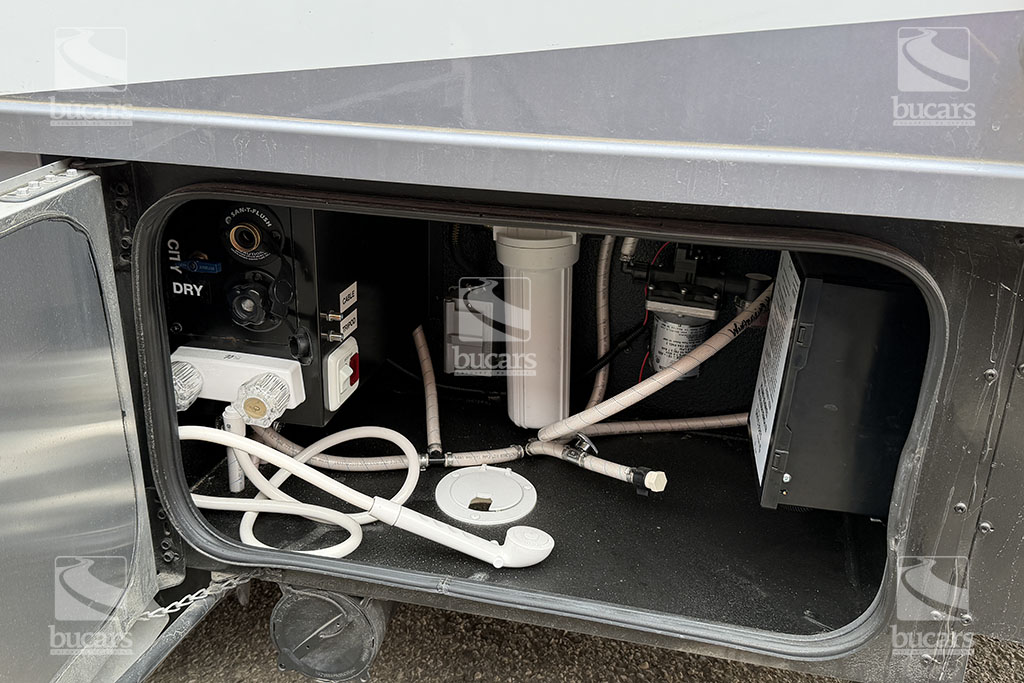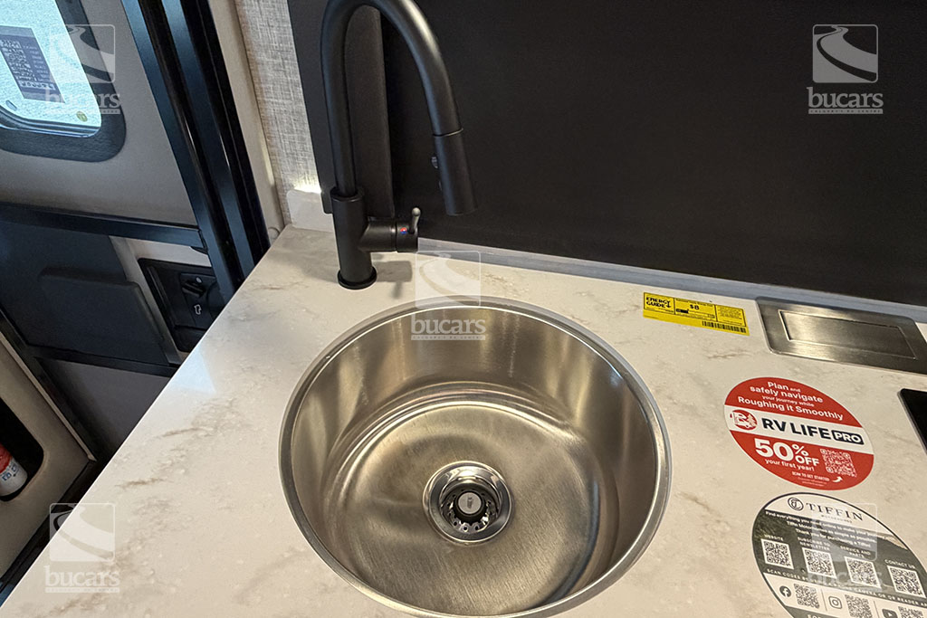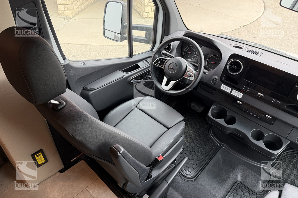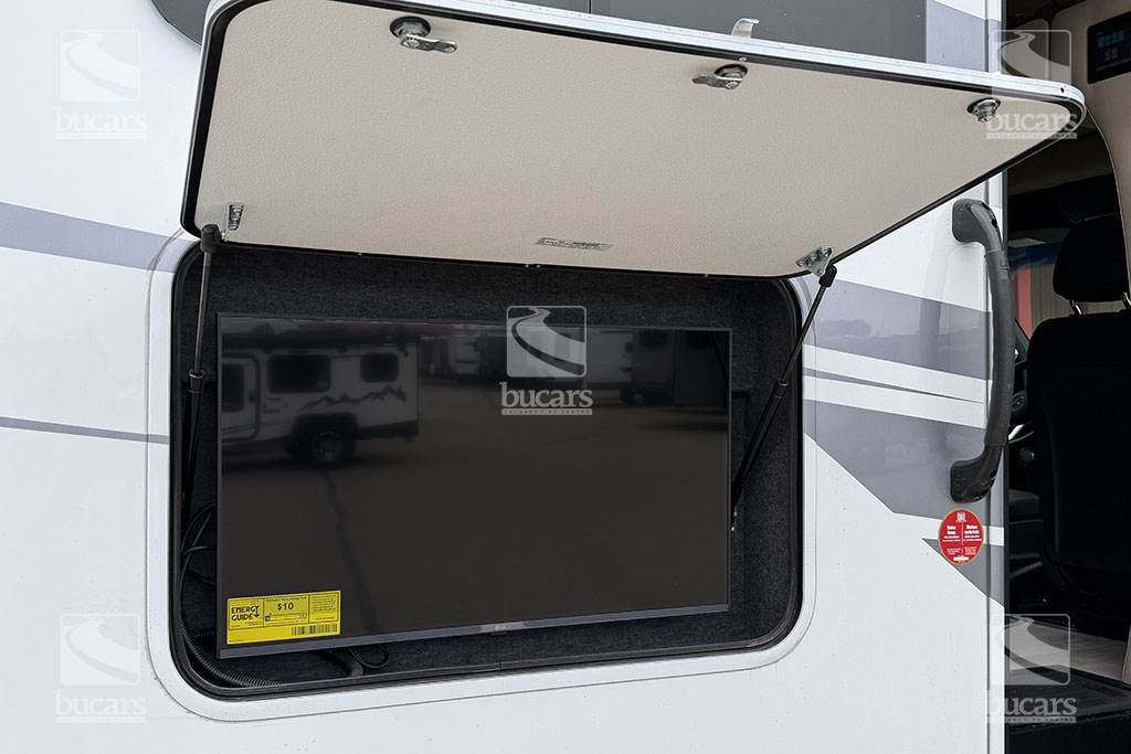 This 2025 Tiffin Wayfarer 25LW with stunning silver full-body paint is a luxurious class C motorhome on a Sprinter diesel chassis. This spacious Class C features a galley kitchen with stylish round sink, induction cooktop (including a set of pots & pans), microwave, and a convenient countertop extension. The TV is integrated into the kitchen for easy viewing from the theatre seating with swing-out table attachment. The bathroom is centrally located and features a large shower with space-saving roll-out door. The rear of this coach is a versatile sleeping area that can be configured as two twin beds or a large king ½ bed. There is an additional TV in the bedroom plenty of storage in the overhead cabinets and the innovative pop-up wardrobe. Kids or guests? No problem – there is a cozy cabover bunk with ladder. And the center of the bunk pops up to allow ample headroom getting in and out of the cockpit. The central vacuum helps you stay clean and tidy on the road and with the solar panels and onboard generator, you can stay off-grid even longer. And with the extra large pass-through storage in the rear, you can bring along all your gear. There is even an exterior TV so you can maximize your time in the great outdoors. Don’t miss out on this premium RV, designed for those who value both style and functionality on the road. For additional information on this luxurious Tiffin Wayfarer, please call or text our main line at 403-207-1666, or come down and see this class C motorhome for yourself at our Balzac lot just north of Calgary. For after-hour inquiries, please text us at 403-207-1666.