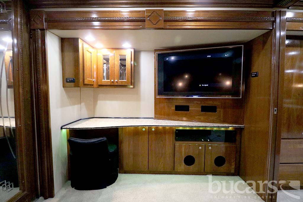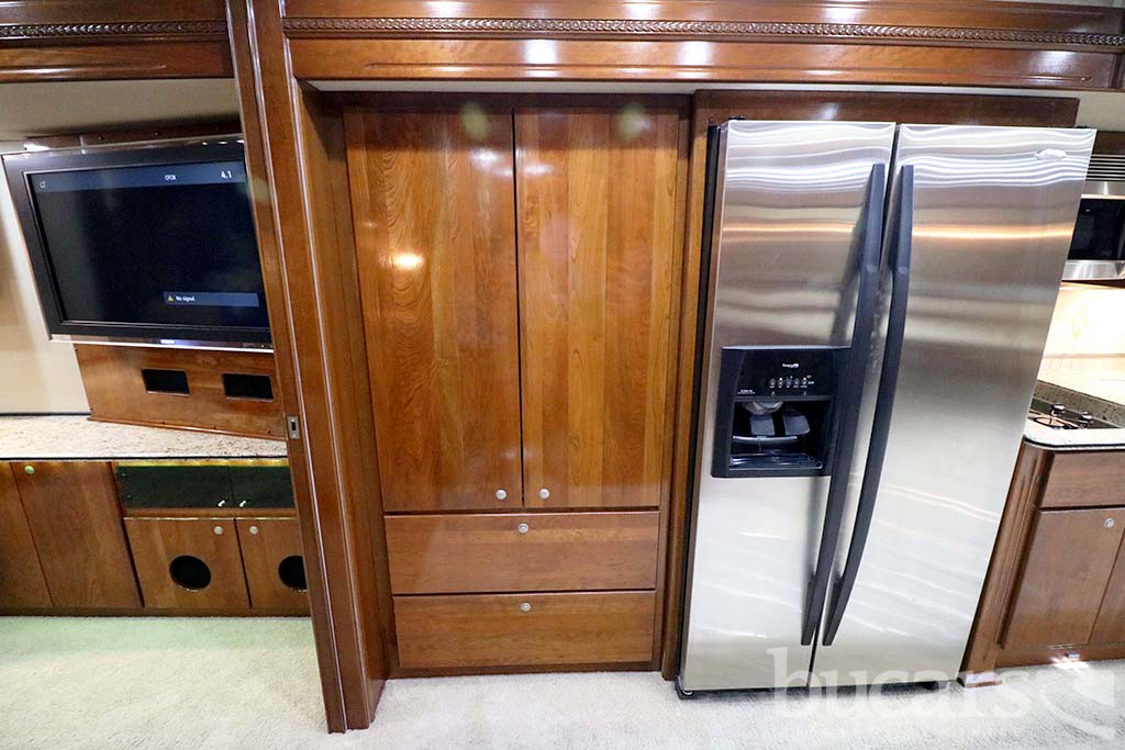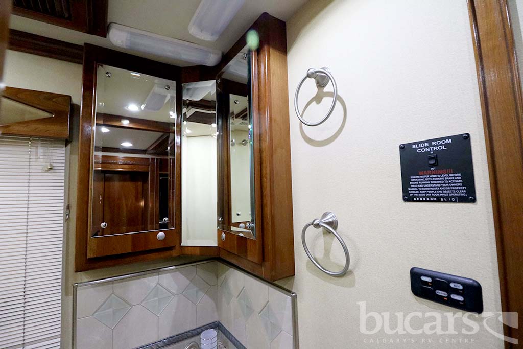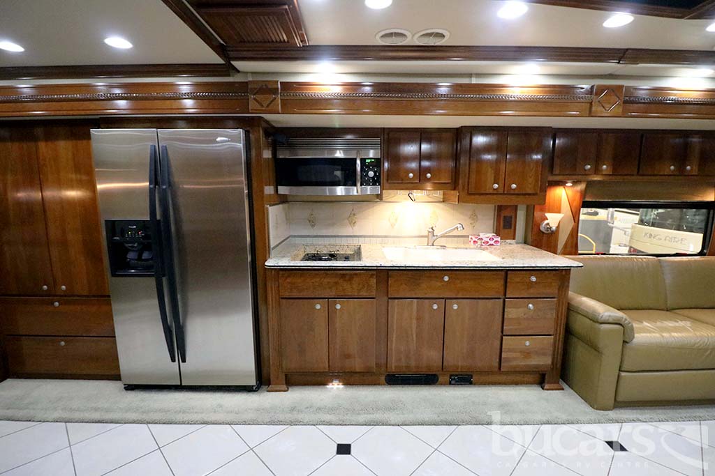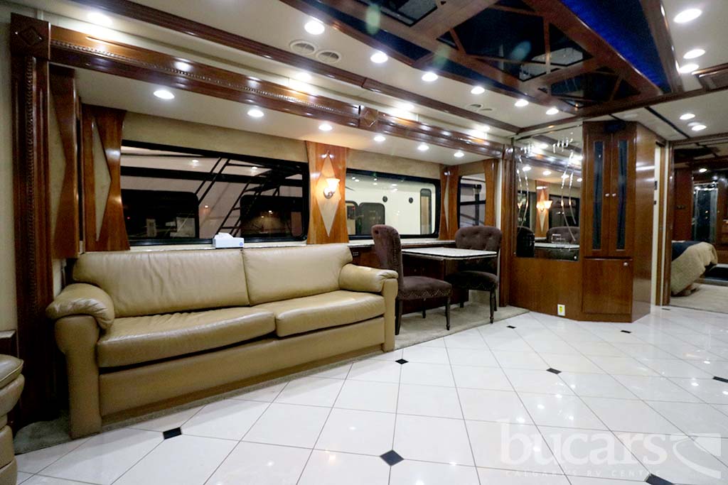 The 2008 American Coach Heritage 45B Class A Diesel motorhome features a Liberty Chassis with a 500Hp Cummins diesel engine Tag axle, independent front suspension, Aqua Hot heating, 2000 Watt inverter, 12 Kw generator, opposing sofa’s and buffet style table and chairs 2 fixed 2 folding, entertainment center and large kitchen, refrigerator with ice and water, convection microwave, midship half bath, king size walk around bed with full wall drawers and vanity, rear primary bath features a cedar lined closed and tons of storage, large glass enclosed shower with skylight, Girard Awning, Backup and sideview cameras, A/C and three slides. Approx. 272,000 KM’s. For additional information on the 2008 American Coach Diesel motorhome please contact us at 1-800-267-8348, or come down and see this Heritage 45B for yourself at our Balzac lot just north of Calgary. For all after hour sales inquiries call or text 403-710-8314, email sales247@bucarsrv.com or during business hours call or text 403-207-1666.