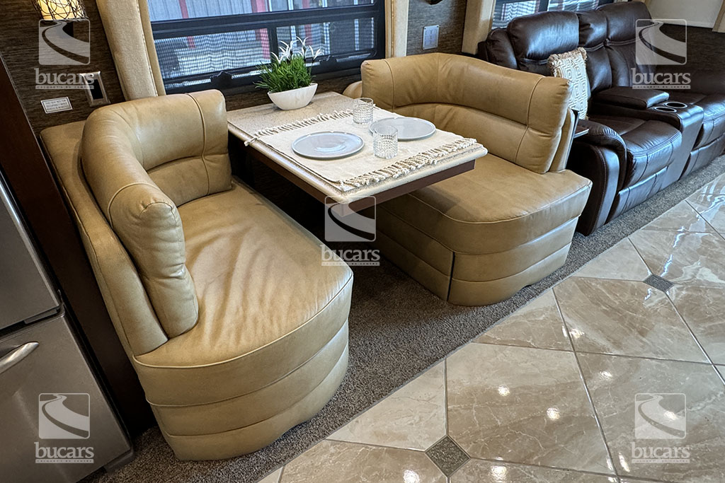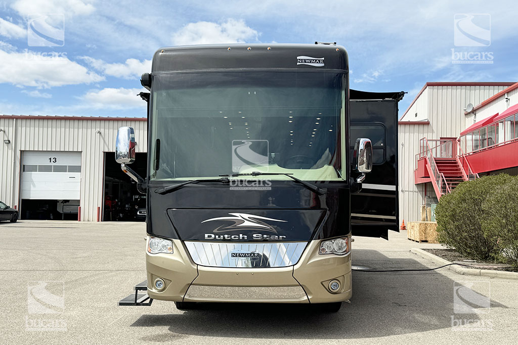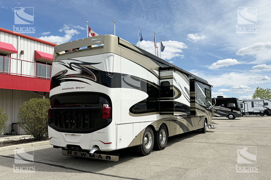 This 2015 Newmar Dutch Star 4369 diesel motorhome is a real head-turner! This pre-owned coach on a Freightliner tag axle chassis features striking full-paint graphics, and it has been meticulously maintained since it left the showroom. Step inside this spacious Newmar coach with a full-wall slide and you will find a host of luxurious features to enhance your time on the road including sparkling tile floors, solid surface countertops, central vacuum system, stacked washer/dryer, three Fantastic Fans, an induction cooktop, convection microwave, and residential stainless steel refrigerator with ice and water in the door. Outside this coach you will find a full Newmar mud guard with chrome accent, 10,000 lb hitch with tow-ready wiring, chest freezer in slide-out tray, additional cargo trays, and tool storage pegboard to help you stay organized. For additional information on this 2015 Newmar Dutch Star motorhome, contact us at 1-800-267-8348 or come down and see this beautiful diesel coach for yourself at our Balzac lot just north of Calgary. For all after hour sales inquiries please call or text us at 403-701-8314, email sales247@bucarsrv.com or during business hours call or text 403-207-1666.