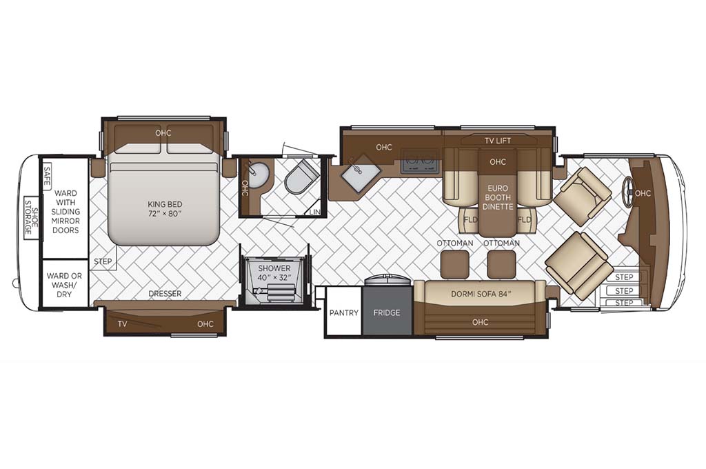 - 110 Volt Recept in Bed Overhead with Two Pass Through Ports
