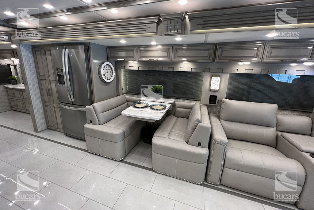 This pre-owned 2023 Newmar London Aire 4551 diesel motorhome with exceptionally low mileage is the epitome of luxury travel. This stunning pre-owned Newmar is the ultimate way to experience the open road in style and comfort. The kitchen is equipped with state-of-the-art appliances, including a residential style refrigerator, induction cooktop and dishwasher, making meal preparation a breeze. The versatile power Extendaflex dinette can be extended if you have additional dinner guests stop by. And with a washer and dryer on board, youll never have to worry about running out of clean clothes.