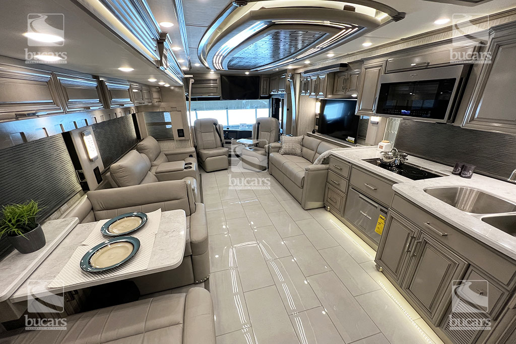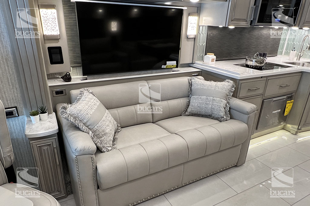 Entertainment is never an issue in the London Aire 4551. With multiple televisions indoors, as well as an exterior television, you can enjoy your favorite shows or sports games while basking in the beauty of the great outdoors. And inside, youll find comfortable theatre seating and a trifold sofa that easily converts to a bed for extra sleeping space.