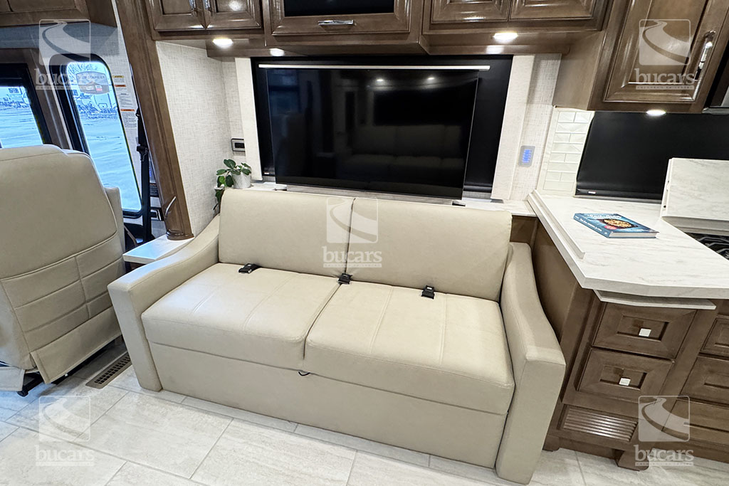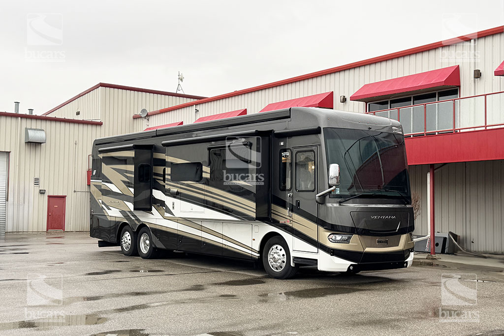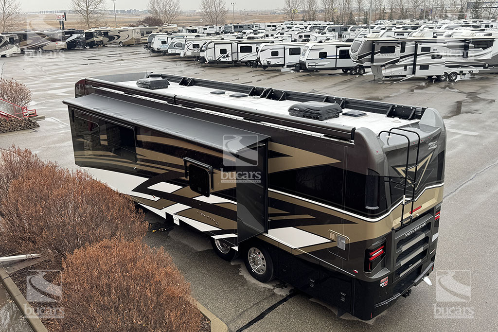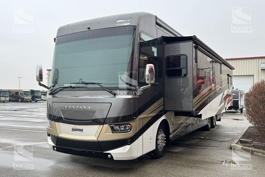 Experience unparalleled luxury and performance with the 2024 Newmar Ventana 4037 class A diesel motorhome. Built on a robust 400hp Freightliner chassis, this RV ensures a smooth and powerful ride. Inside, you’ll find a spacious and elegantly designed living area that sleeps up to six, featuring a sumptuous king-sized bed for ultimate comfort. Luxurious features to make your travels comfortable include heated tile floor, central vacuum system, Omniview 360 camera system, exterior TV, safe in wardrobe, heated holding tanks, and basement storage trays. With three expansive slides, the Ventana 4037 provides ample space for relaxation and entertainment, making it the perfect choice for those who desire the best in RV living. Don’t miss the chance to elevate your adventures with this top-of-the-line diesel motorhome. For additional information on this Newmar Ventana, please call or text our main line at 403-207-1666, or come down and see this full-featured diesel pusher yourself at our Balzac lot just north of Calgary. For after-hour inquiries, please text us at 403-207-1666.