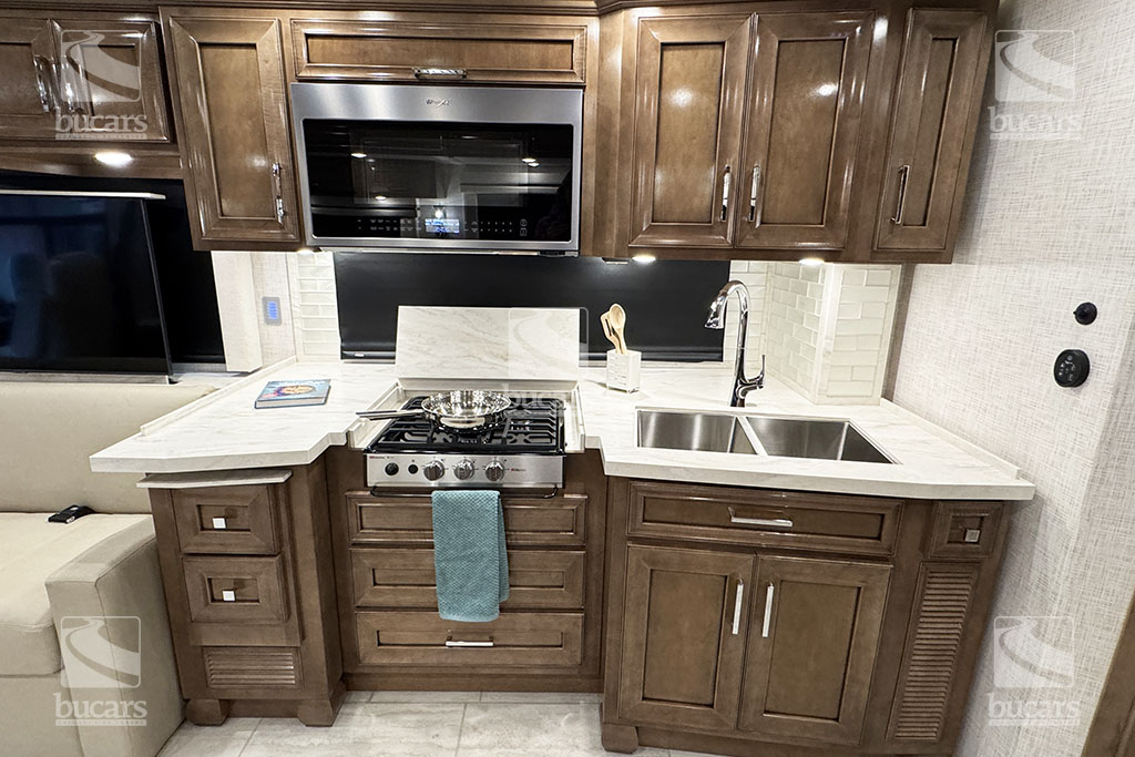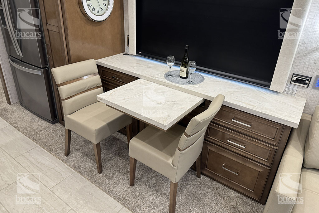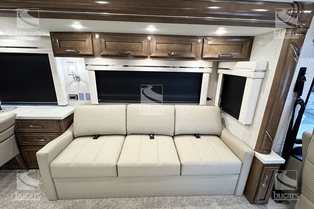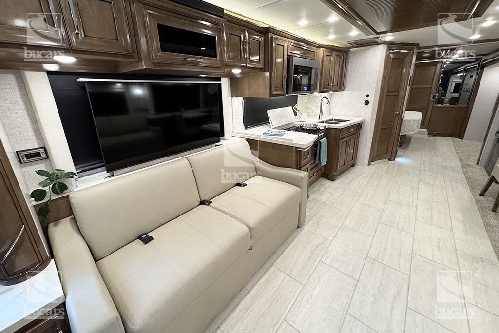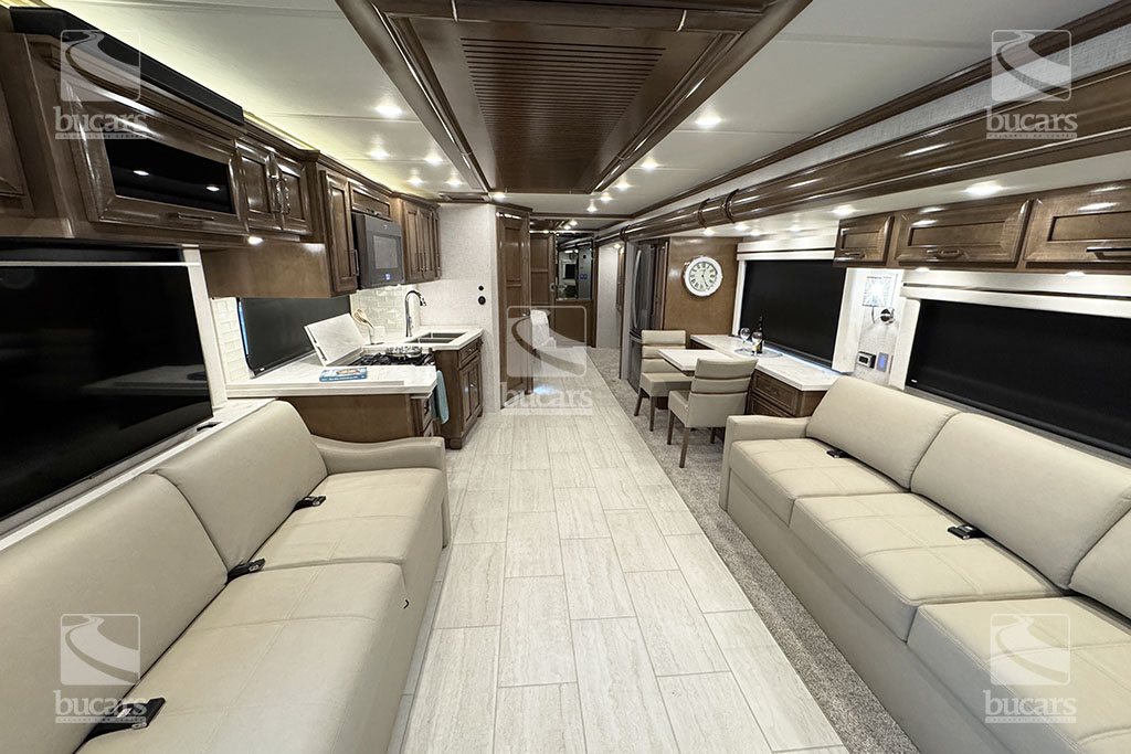 Experience unparalleled luxury and performance with the 2024 Newmar Ventana 4037 class A diesel motorhome. Built on a robust 400hp Freightliner chassis, this RV ensures a smooth and powerful ride. Inside, you’ll find a spacious and elegantly designed living area that sleeps up to six, featuring a sumptuous king-sized bed for ultimate comfort. Luxurious features to make your travels comfortable include heated tile floor, central vacuum system, Omniview 360 camera system, exterior TV, safe in wardrobe, heated holding tanks, and basement storage trays. With three expansive slides, the Ventana 4037 provides ample space for relaxation and entertainment, making it the perfect choice for those who desire the best in RV living. Don’t miss the chance to elevate your adventures with this top-of-the-line diesel motorhome. For additional information on this Newmar Ventana, please call or text our main line at 403-207-1666, or come down and see this full-featured diesel pusher yourself at our Balzac lot just north of Calgary. For after-hour inquiries, please text us at 403-207-1666.