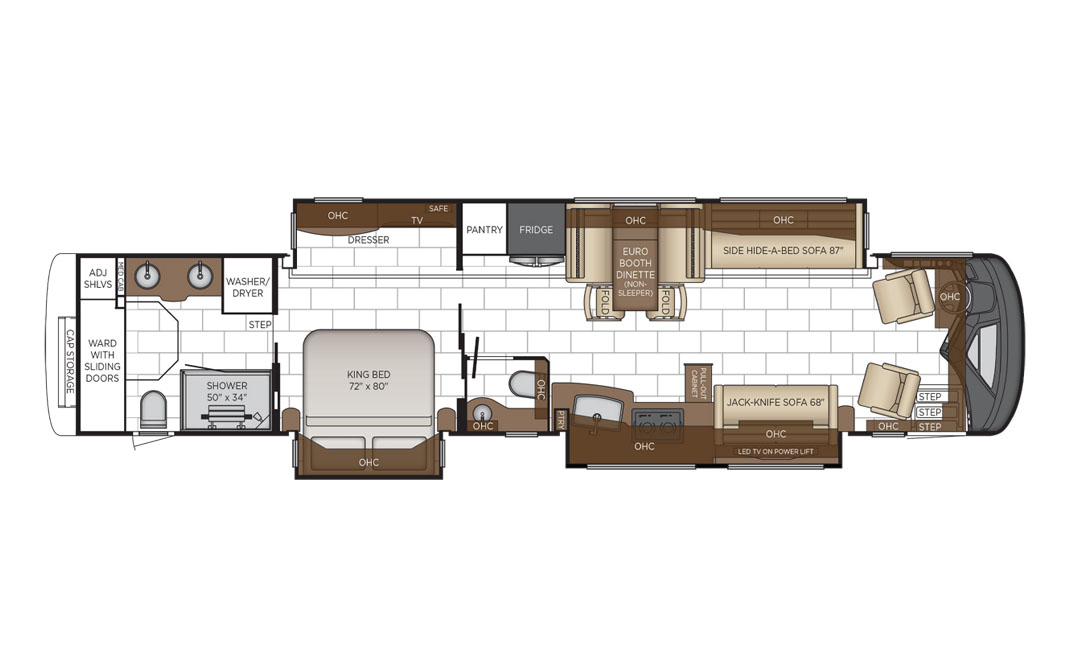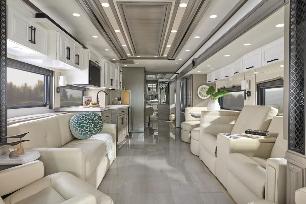 The 2026 London Aire sets a new standard in luxury RV travel, combining exquisite design with state-of-the-art technology. It is designed with long-time RV enthusiasts in mind, blending traditional design elements with Newmar’s legendary craftsmanship. As the entry point to 605 HP in the Newmar luxury lineup, this exceptional coach delivers impressive 20,000 lbs. towing capacity and refined comfort throughout.