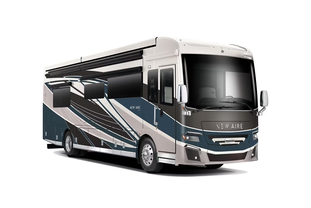 Introducing the Newmar New Aire 3545, a Class A Diesel motorhome that truly elevates the RV lifestyle. This beautifully crafted coach has a host of premium features including a 360-degree camera system, dishwasher, washer/dryer, power storage trays, central vacuum system, and Sanicon turbo system. Discover the perfect balance of intimacy and comfort the 3545 floorplan. The efficiently designed layout creates distinct living zones that allow two travelers to move effortlessly throughout the coach. The rear bedroom suite, featuring a king-size bed and spacious wardrobe, becomes your private retreat after days of exploration, while the full mid-ship bath and convenient dry bar enhance your daily routine with thoughtful touches that prove the best things in life don’t require excess space. For additional information on this stunning 2026 Newmar New Aire, please contact us at 1-800-267-8348.