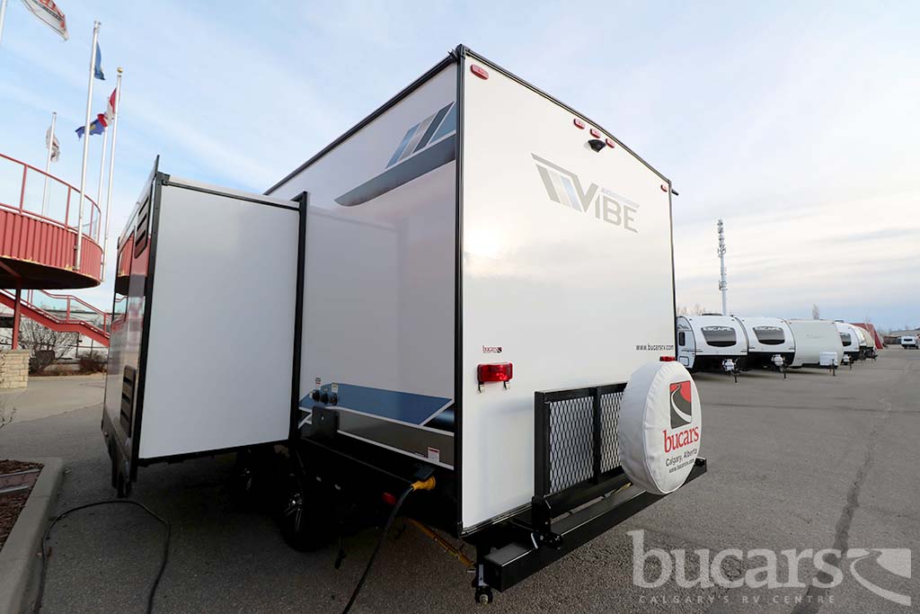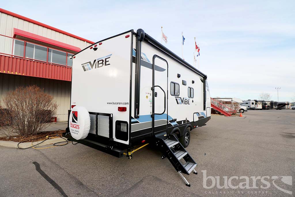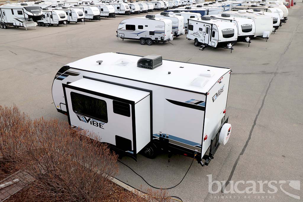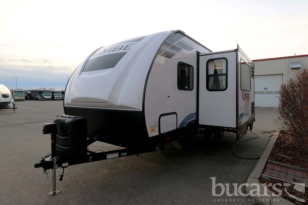 The 2022 Forest River Vibe VBT22RB travel trailer not only looks amazing but also comes equip with all the bell and whistles, some of the features include The Family Camping Package and the Premium Package, power fan and skylight in washroom, True stabilizer jacks with JT Strong Arms, upgraded pillow top mattress, flat screen TV, large U-shaped booth dinette in slide with underneath storage, tons of kitchen counter space as well as storage, 3 burner cooktop with oven, microwave, undermount sink, queen size walk around bed with above head and below bed storage, exterior pass through storage and grill, rear back pack rack and One touch electric awning. For additional information on the 2022 Forest River travel trailer please contact us at 1-800-267-8348, or come down and see this Vibe VBT22RB for yourself at our Balzac lot just north of Calgary. For all after hour sales inquiries call or text 403-710-8314, email sales247@bucarsrv.com or during business hours call or text 403-207-1666.