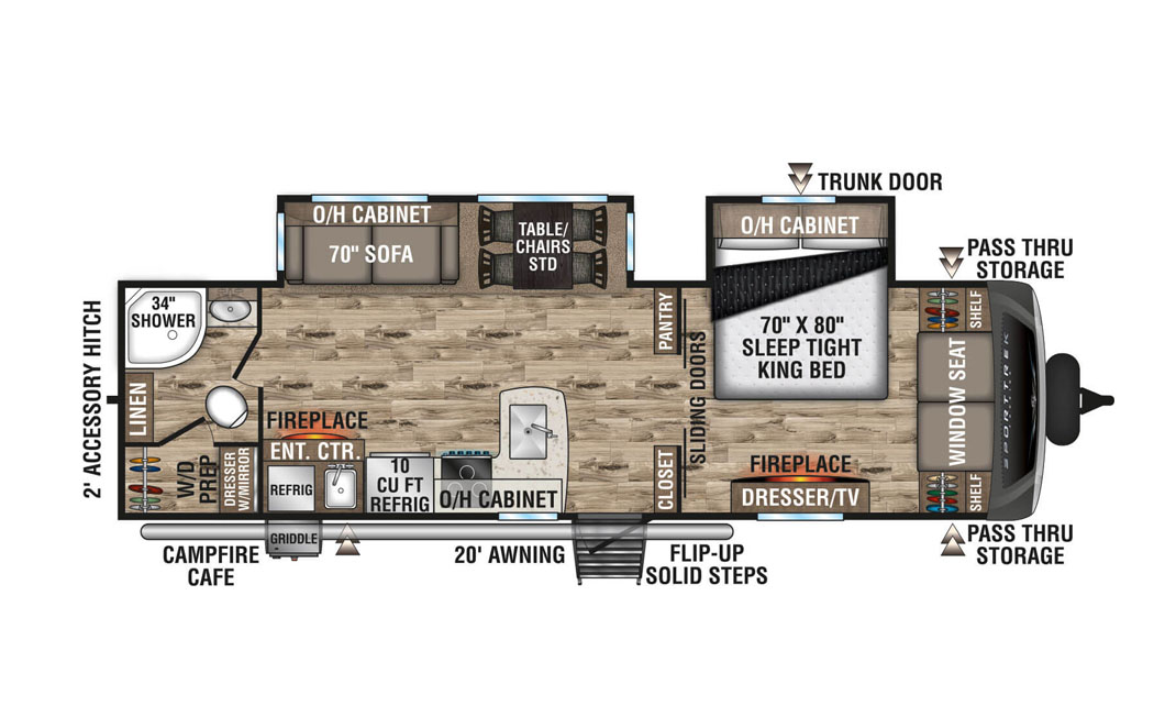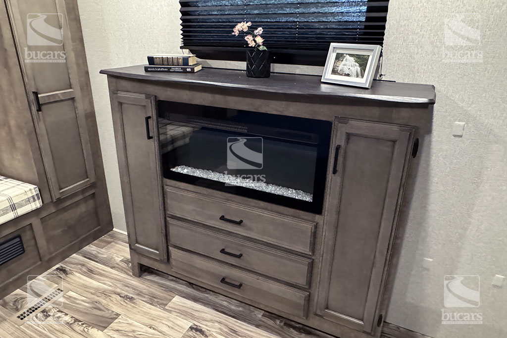 This 2022 Venture Sporttrek Touring STT302VRB is loaded with premium features to make your camping getaways comfortable and memorable. From the moment you enter this 33.5-foot travel trailer, you will be enchanted by the bright modern farmhouse style finishes. Enjoy meals or games at the freestanding dining table, and relax on the theatre seating across from the entertainment centre and fireplace. The open kitchen features a deep sink with pull-down faucet, three burner cooktop and oven, microwave, and two-way refrigerator with designer raised white wood panels. The rear bath is spacious with ample storage including a full walk-in closet in addition to the linen pantry. The bedroom in the nose is your sanctuary and it features an additional electric fireplace, dresser, and quaint window seat perfect for a cozy reading nook. Additionally you will enjoy cooking at the exterior kitchen and the solar panel will keep your battery topped up for off-grid adventures. For additional information on this used travel trailer, please call or text our main line at 403-207-1666, or come down and see this full-featured Sporttrek Touring for yourself at our Balzac lot just north of Calgary. For after-hour inquiries, please text us at 403-207-1666.