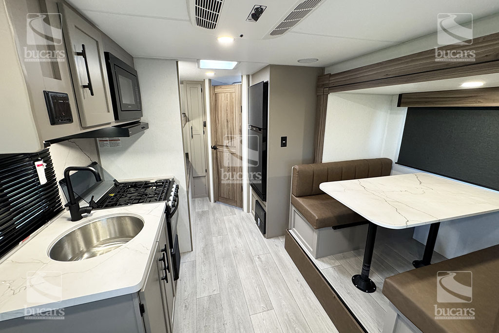 The 2026 K-Z Connect Mini 191BHK is a straightforward travel trailer for the whole family! This travel trailer won the Best RV Debut award from RV Business magazine in 2024 and its easy to see why. This compact and lightweight travel trailer has a dry weight of just over 4,000 pounds and measures in just over 22 feet. Enjoy more of the outdoors with an outdoor kitchen under the 14 power awning. Inside it has a cozy dinette across from the well-appointed kitchen, stacked bunks in the rear, bathroom with plenty of natural light, and TV and bed in the front. All of this in a stylish and streamlined fibreglass sided package. For additional information on this K-Z Connect Mini, please call or text our main line at 403-207-1666, or come down and see this family travel trailer for yourself at our Balzac lot just north of Calgary. For after-hour inquiries, please text us at 403-207-1666.
