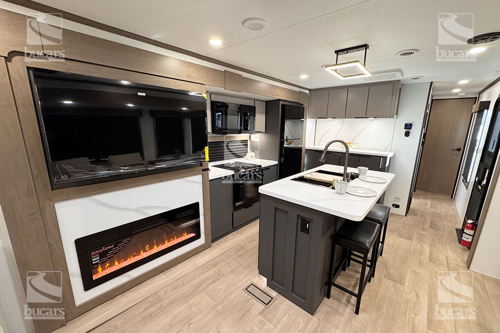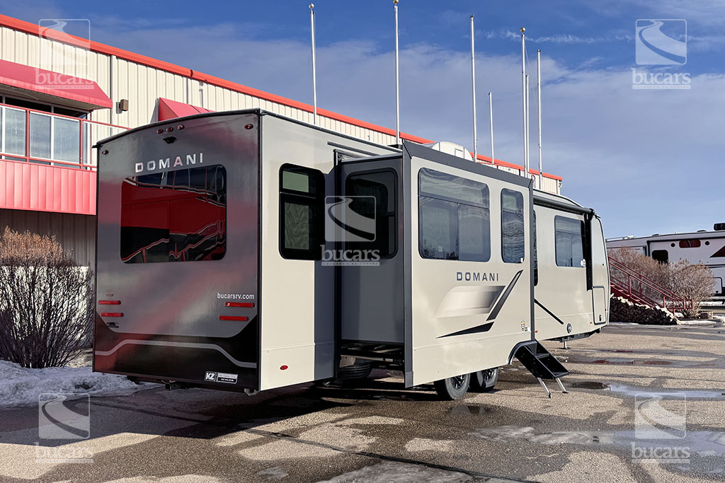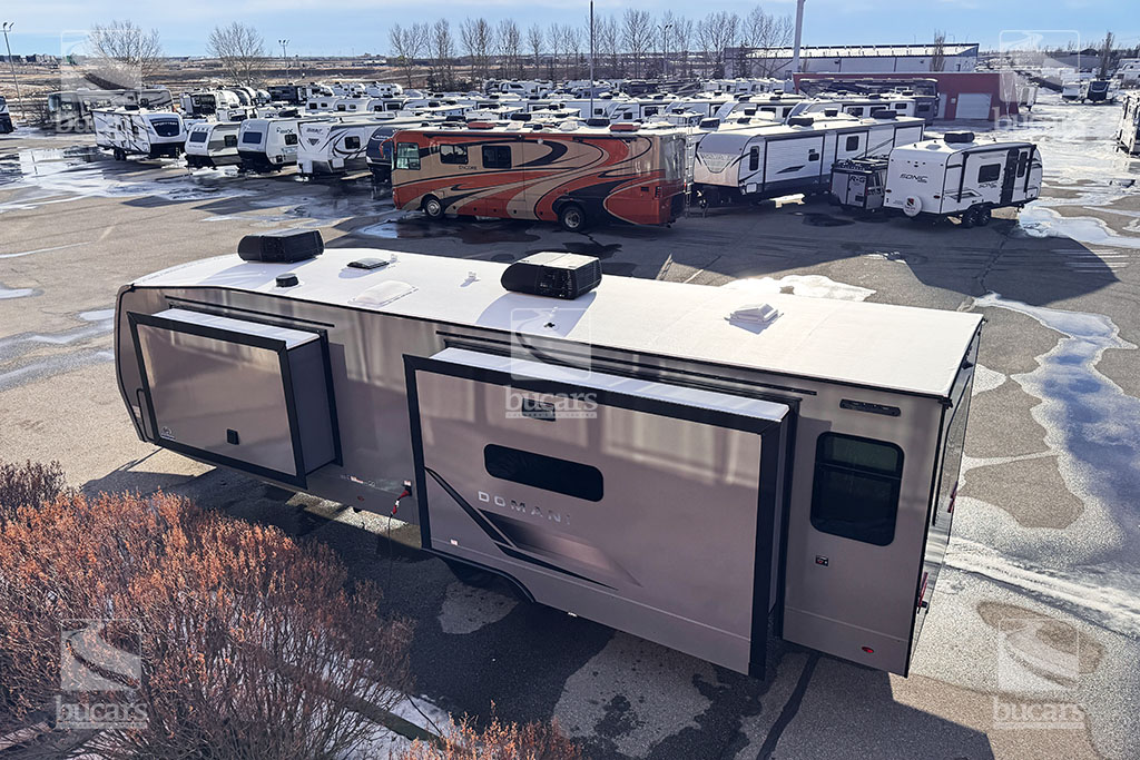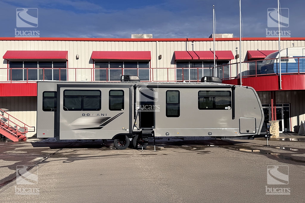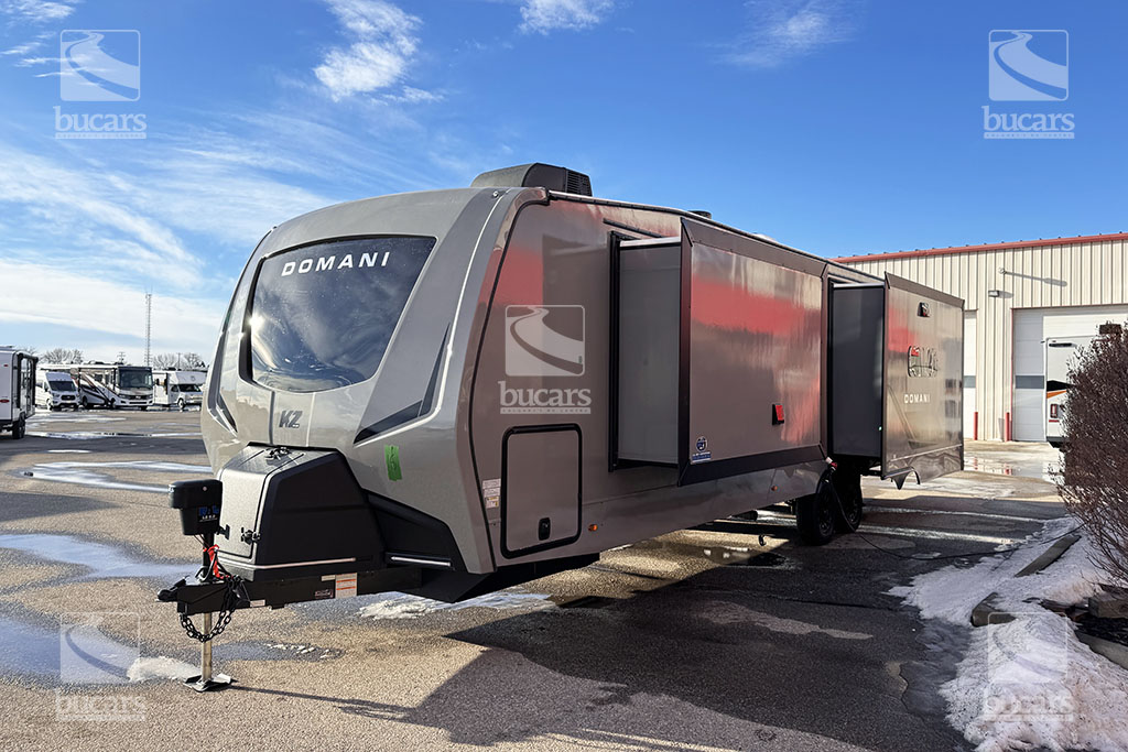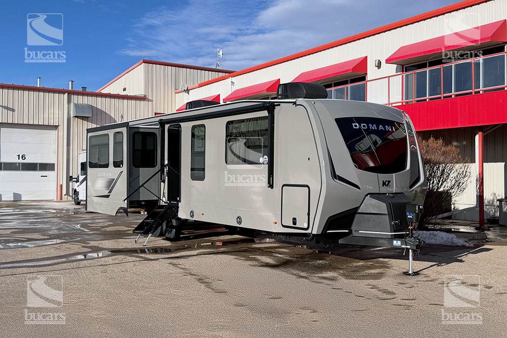 K-Z has wowed the industry once again with their all-new DOMANI lineup of luxury travel trailers. This well-built couple’s RV in striking grey gelcoat finish features an island kitchen, rear living with an innovative quick fold sofa and theatre seating across from the entertainment centre with electric fireplace. This loaded travel trailer even has an onboard washer/dryer to keep you fresh on the go. The addition of a 2nd A/C unit keeps you cool, even on the hottest of days. The modern finishings in this RV take camping to a new level. For additional information on this 2026 K-Z Domani, please contact us at 1-800-267-8348, or come down and see this all-new travel trailer for yourself at our Balzac lot just north of Calgary. For after-hour inquiries, please text us at 403-207-1666.