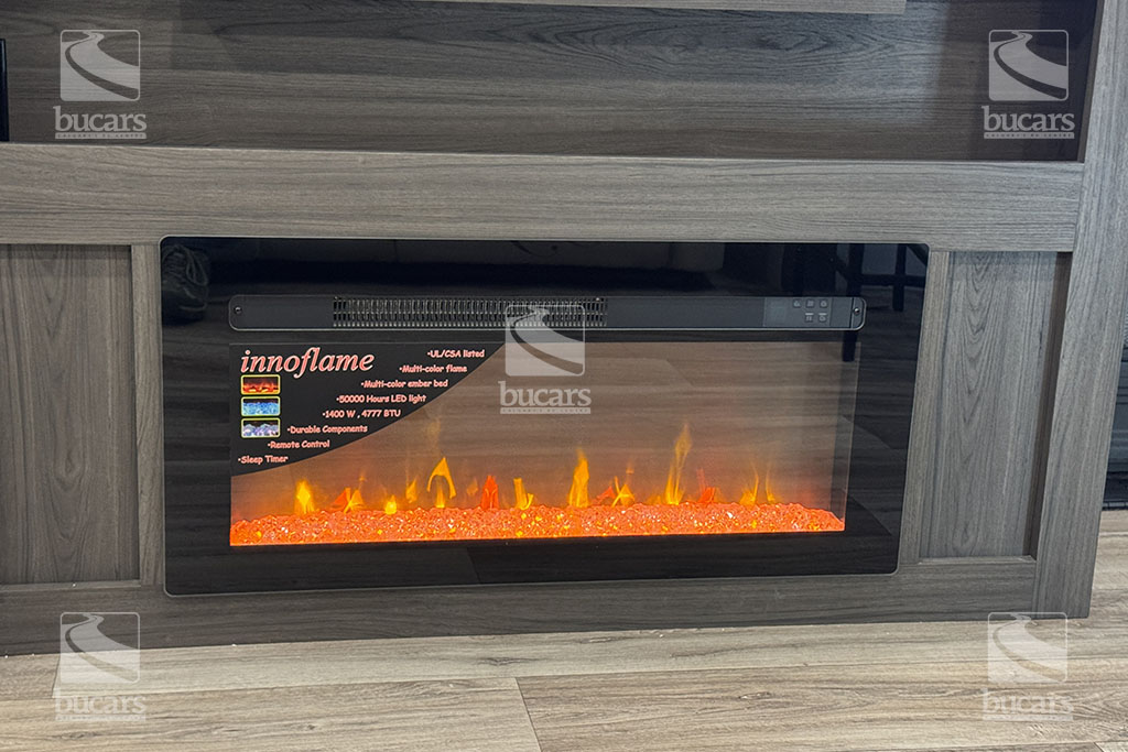 - Power tongue jack, 5,000 BTU electric frameless fireplace