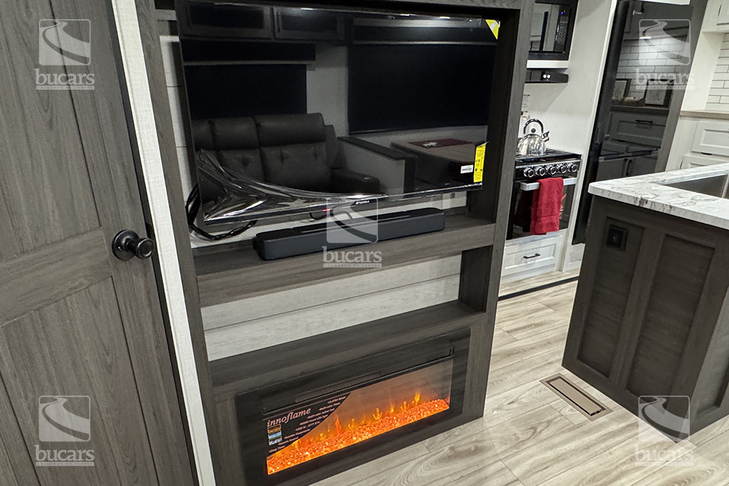 - Power tongue jack, 5,000 BTU electric frameless fireplace